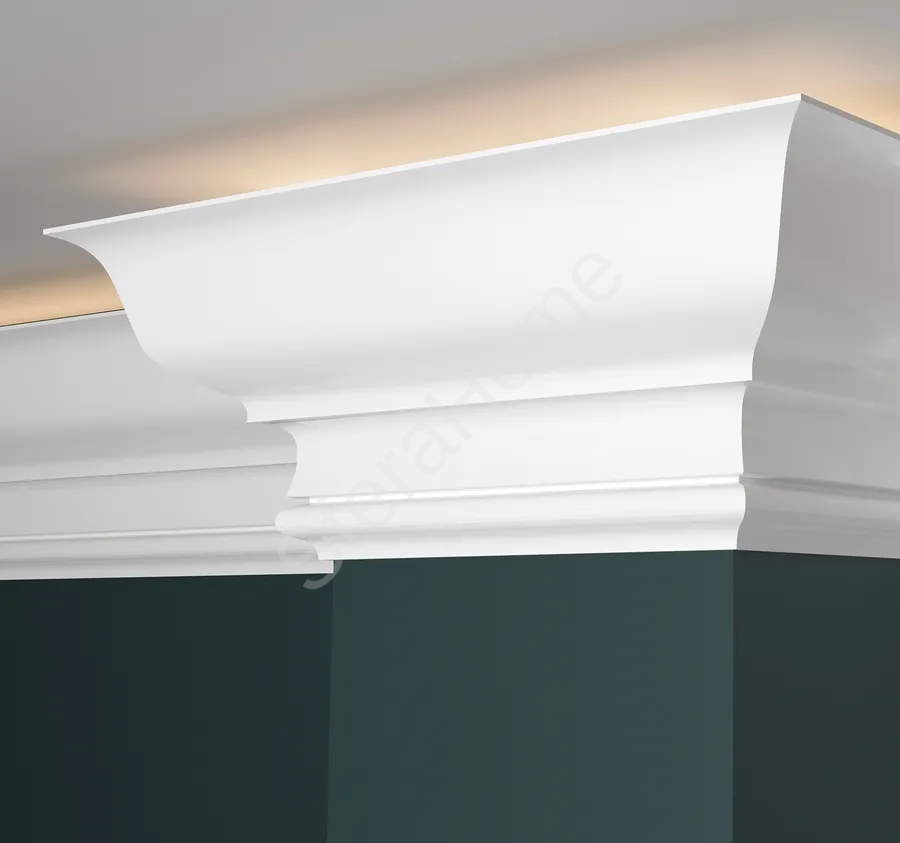 Декоративный карниз с отражателем DD509 (120х75x2000мм) Это универсальное решение для оформления стен и потолков. Они создают элегантные акценты в интерьере, скрывают стыки обоев, служат декоративными рамками и придают стенам завершённый вид. В нашем каталоге представлены различные виды карнизов: