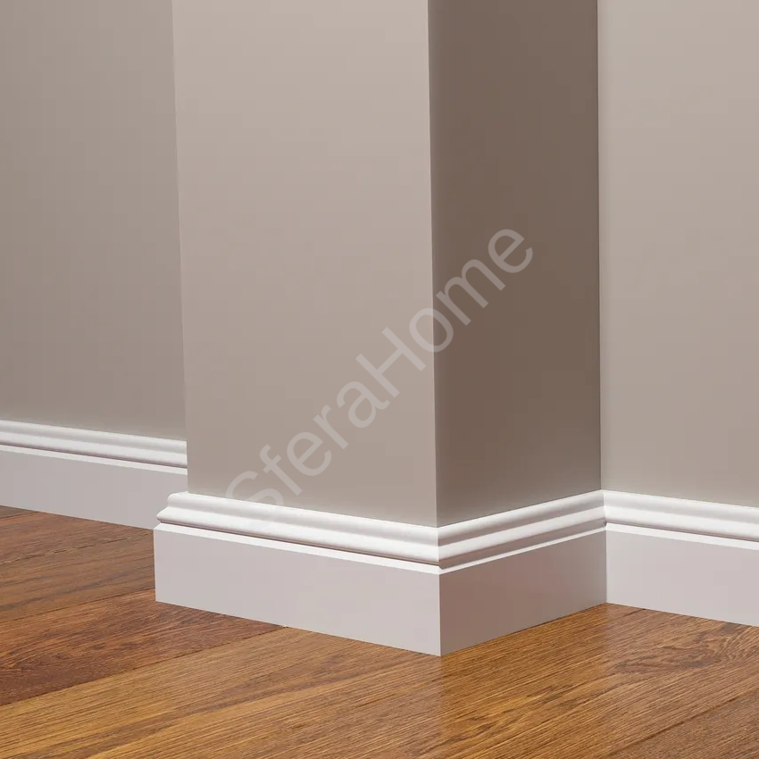 Декоративный плинтус DD27 (59x13x2000мм) Декоративные плинтусы из полистирола - это отделочный материал, который используется для декорирования помещений, скрытия стыков между стенами, потолком и полом. Полистирол - синтетический полимер, который хорошо поддаётся обработке, что позволяет создавать плинтусы с выраженной текстурой, рельефом или художественными элементами. Преимущества: