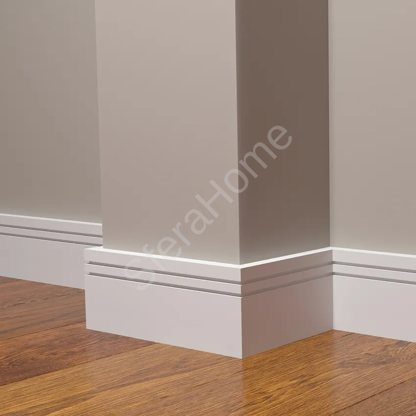 Декоративный плинтус DD717 (80х13x2000мм) Декоративные плинтусы из полистирола - это отделочный материал, который используется для декорирования помещений, скрытия стыков между стенами, потолком и полом. Полистирол - синтетический полимер, который хорошо поддаётся обработке, что позволяет создавать плинтусы с выраженной текстурой, рельефом или художественными элементами. Преимущества: